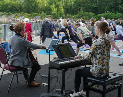Wendy Kelly, yoga instructor; Cameron Crozman, cello; Meagan Milatz, piano